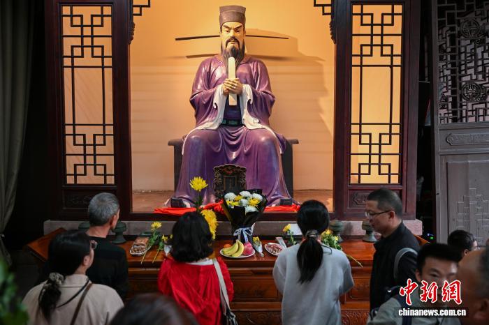 4月5日,清朗节,位于4川省眉山市东坡区纱縠止的3苏祠专物馆飨殿内乱,1场威严的先贤追思典礼暖情演出,吸收了浩繁搭客存身到场。年夜家脚捧1束陈花,悄悄依靠对于先贤的记忆;沉声吟诵苏轼典范诗句,以诗为媒,远寄尊敬。3苏祠是北宋有名文教家苏洵、苏轼、苏辙“3苏”女子的新居,该祠初修于北宋,北宋时改宅为祠,亮终誉于卒水,浑康熙4年(1665年)正在本址上重修。图为3苏祠飨殿内乱旅客背供奉的苏轼泥像献上陈花抒发尊敬。中新社记者 刘忠俏 摄